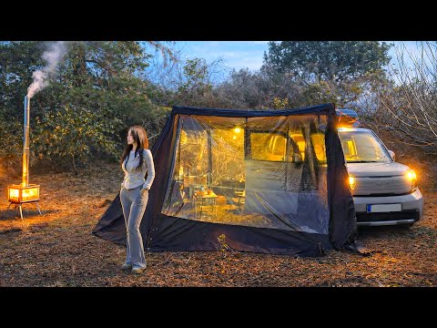 🍊 감귤밭 아늑한 어닝 텐트속에서 차박하기🚙 | 비어캔 치킨과 말차 감귤 케이크 만들어 먹기